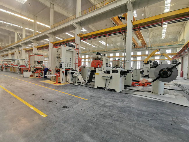 沖床伺服偏擺送料機配雙頭開卷機生產(chǎn)線實例