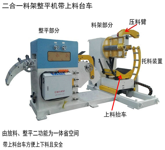 二合一開(kāi)卷矯正機(jī)帶上料臺(tái)車(chē)圖片