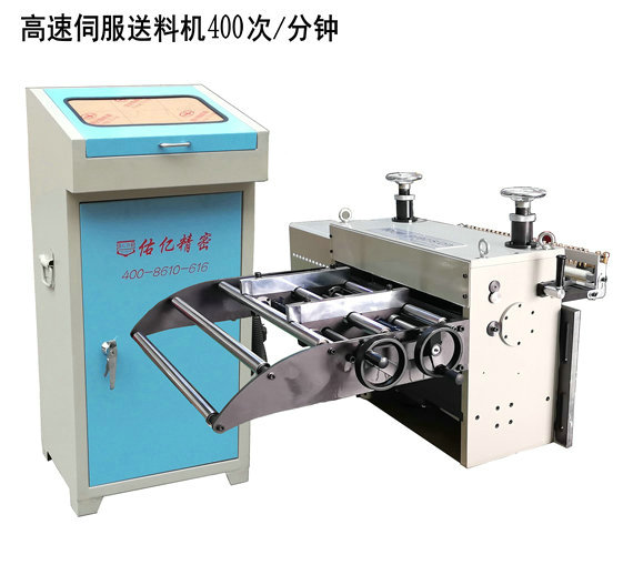 1、雙伺服送料機(jī)適合搭配高速?zèng)_床,雙伺服控制,送料速度可達(dá)300/分鐘