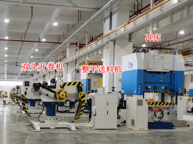 →卷料整平伺服送料機(jī)配雙頭開卷機(jī)自動(dòng)沖壓生產(chǎn)線